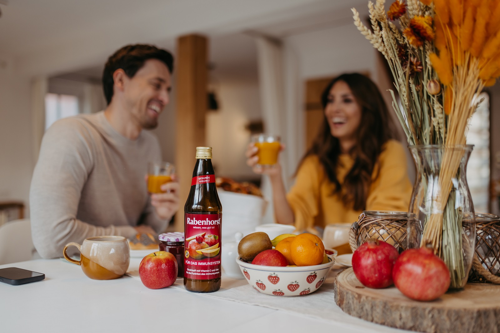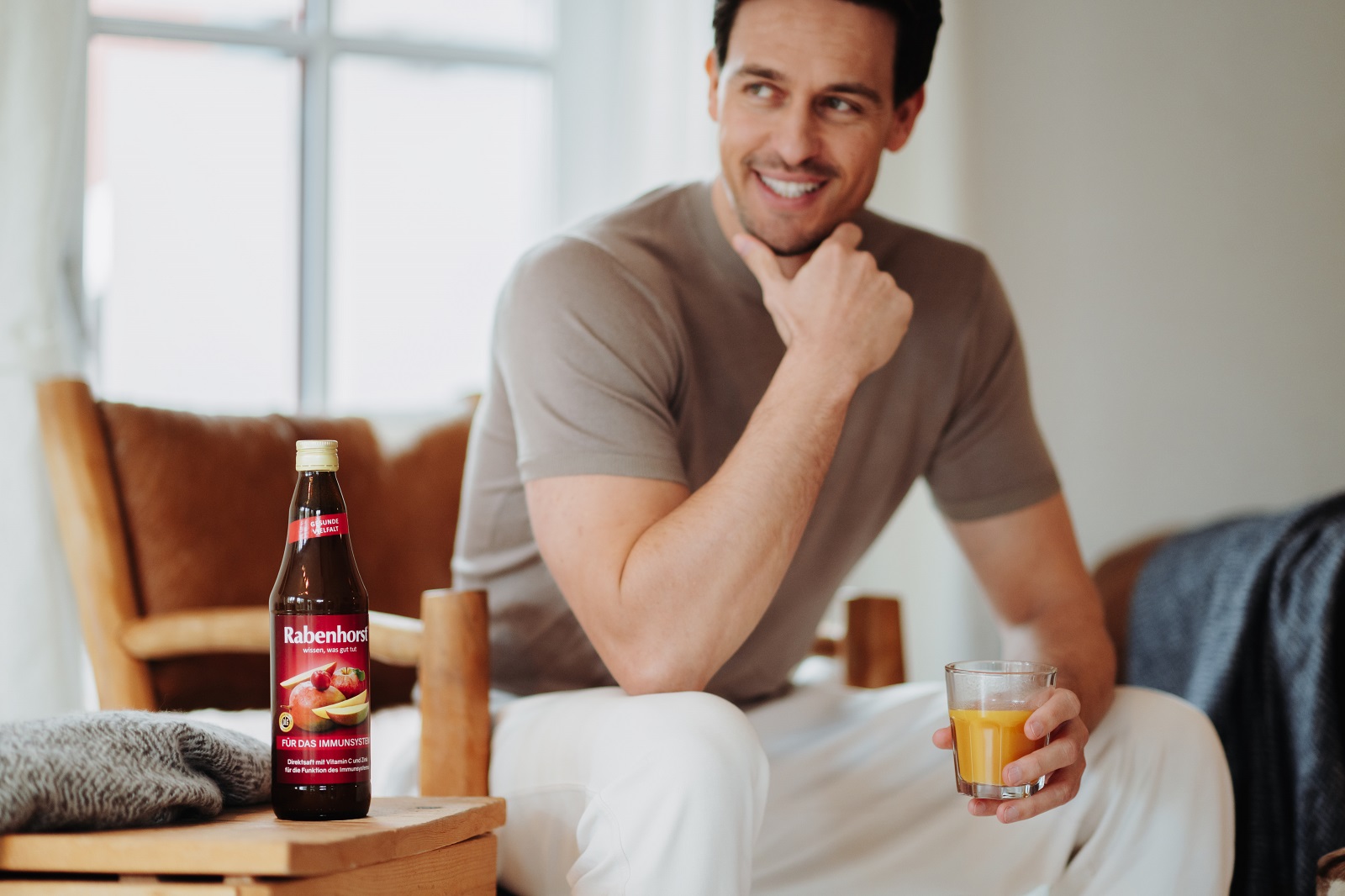 Aus saftigen Äpfeln, sonnengereiften Mangos und wertvollen Acerolakirschen entsteht bei uns ein Saft von höchster Qualität. Zur Unterstützung des Immunsystems wird dieser mit Vitamin C und Zink ergänzt. Diese tragen zu einer normalen Funktion des Immunsystems bei.