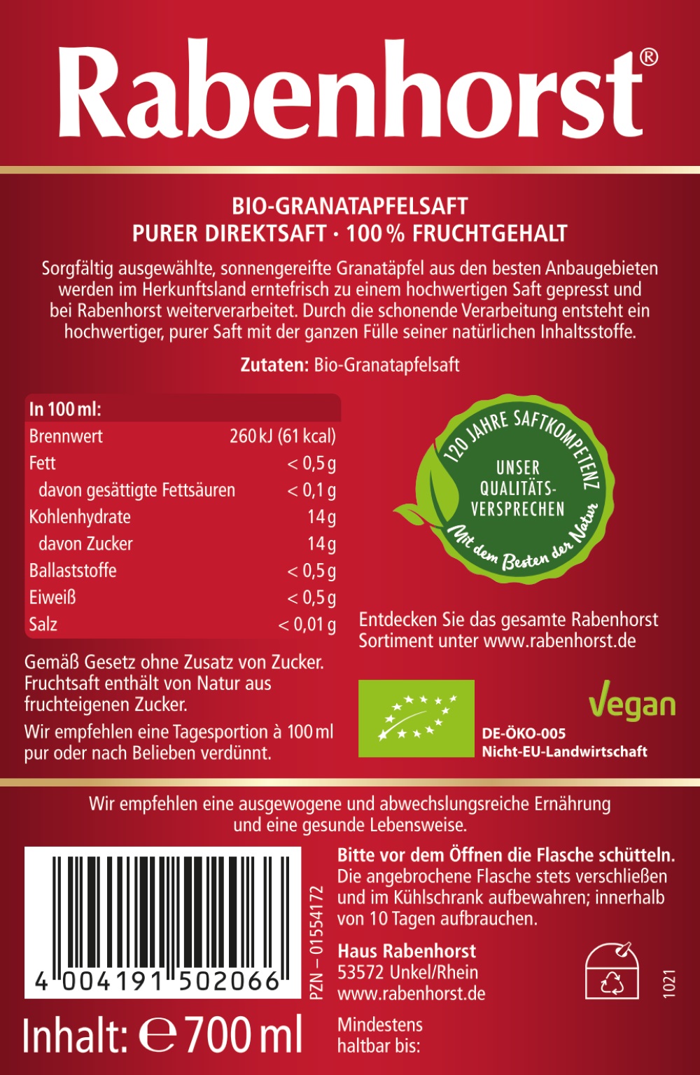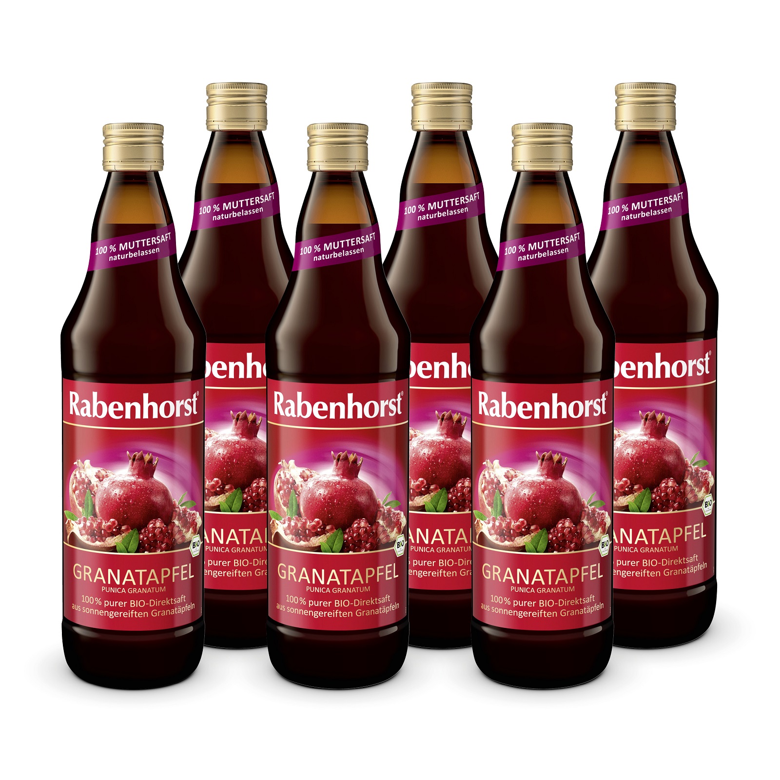 RABENHORST Granatapfel MUTTERSAFT BIO 6er Pack (6 x 700 ml). 100 % purer BIO-Granatapfel-Direktsaft aus erster Pressung