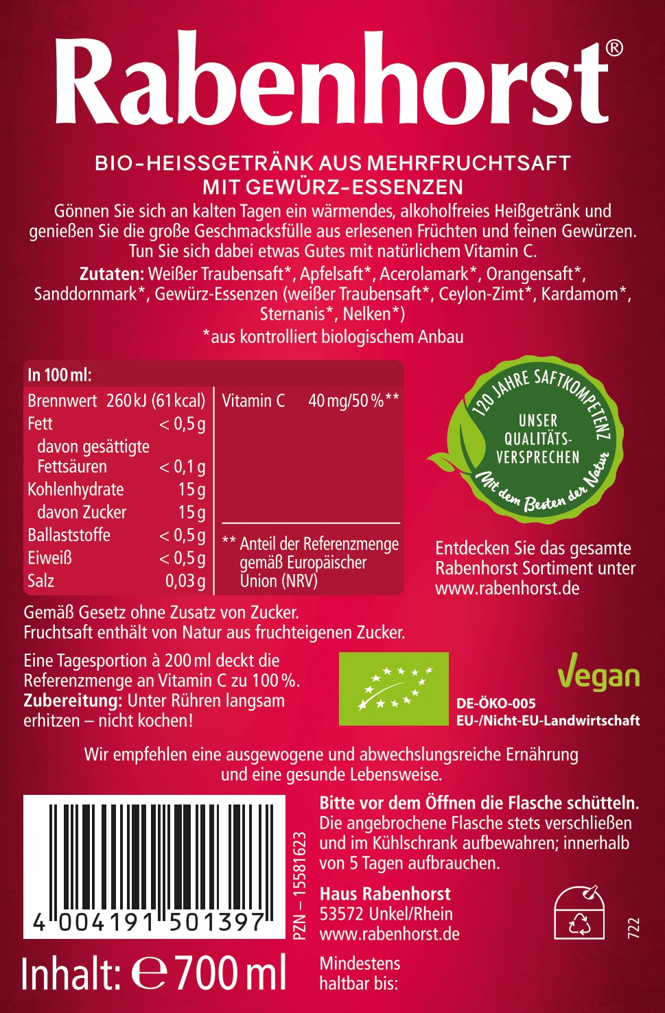 RABENHORST Heißer Horst BIO 6er Pack (6 x 700 ml) – Alkoholfreies Bio-Heißgetränk mit natürlichem Vitamin C