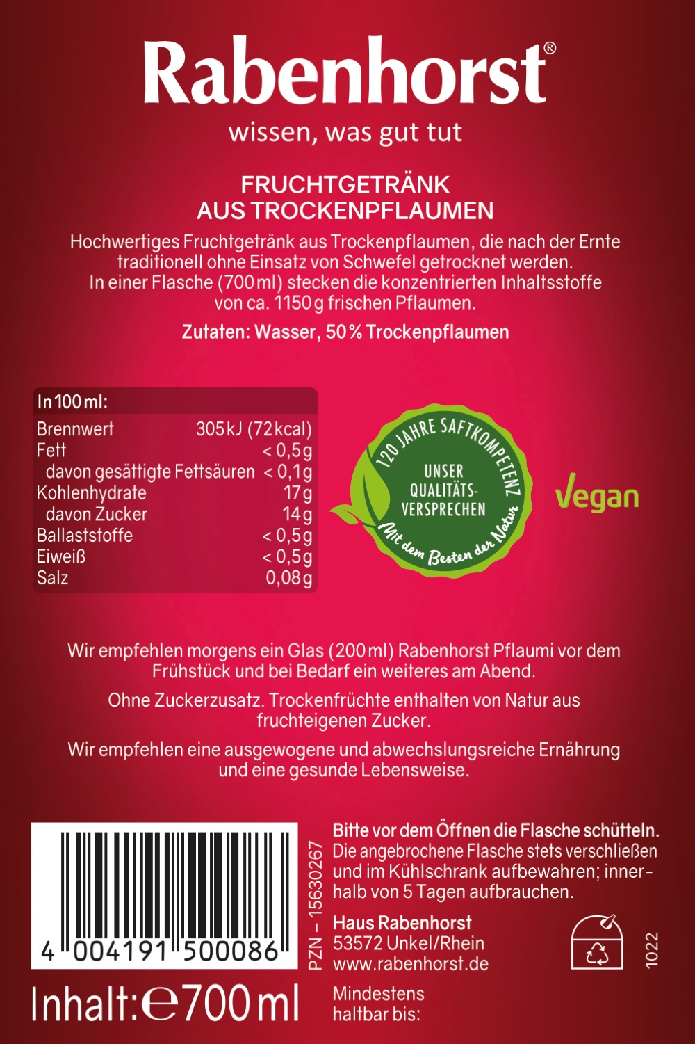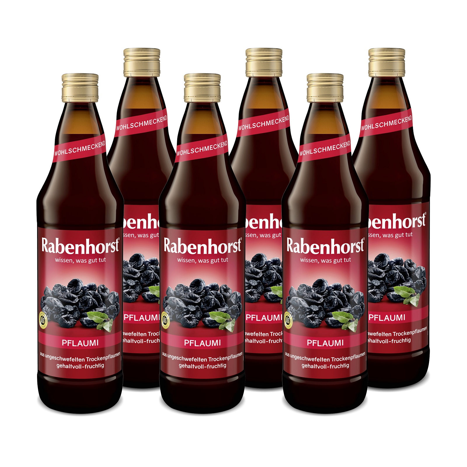 RABENHORST Pflaumi 6er Pack (6 x 700 ml). Fruchtiges Pflaumen-Getränk aus ungeschwefelten Trockenpflaumen