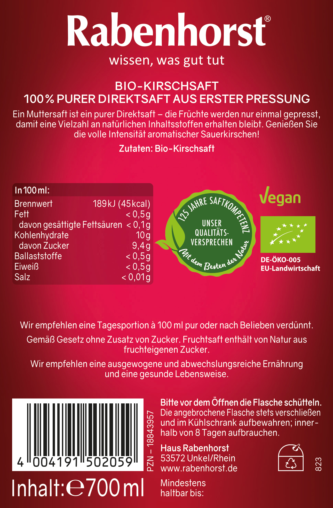 Zutaten: Kirschsaft*, *aus kontrolliert biologischem Anbau
