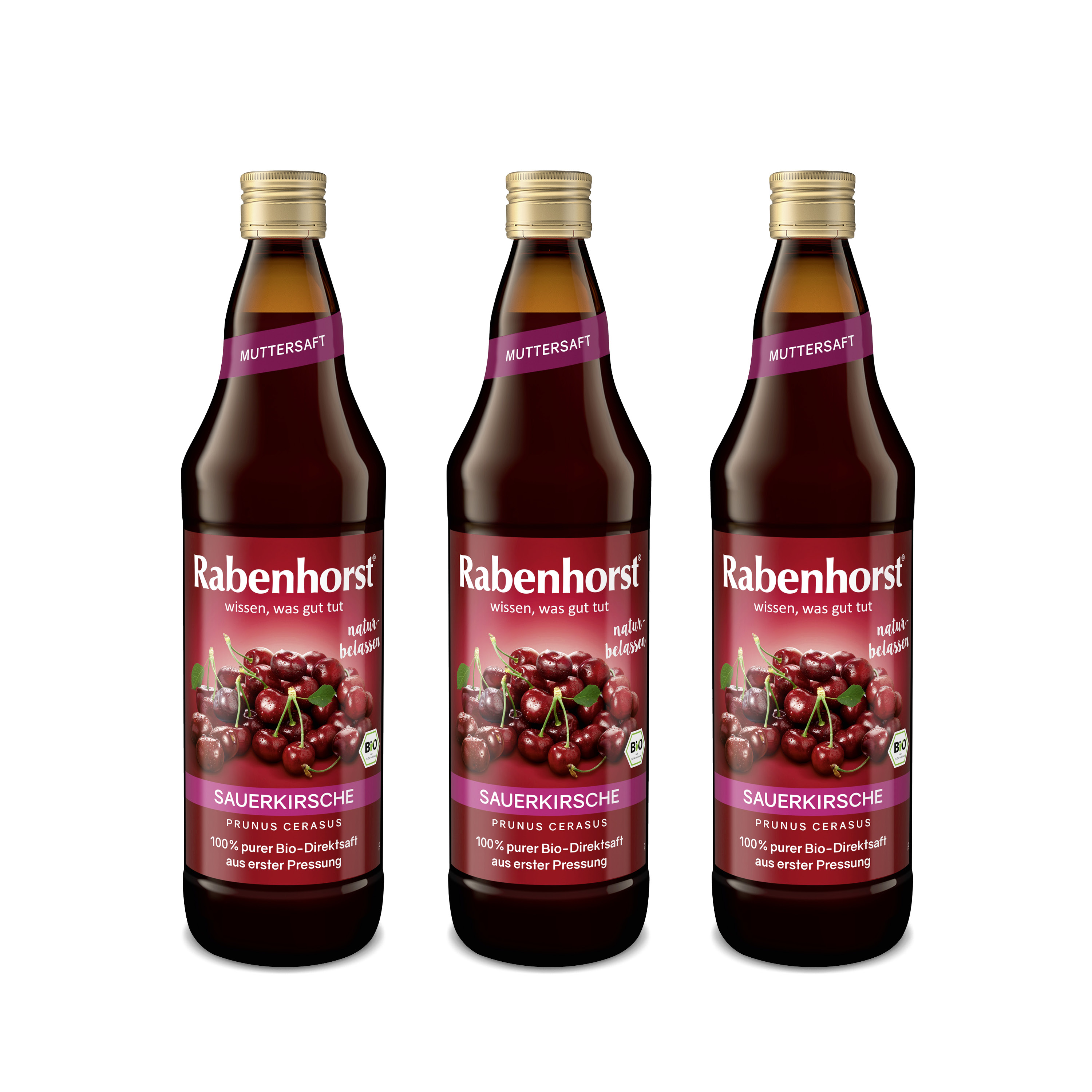 RABENHORST Sauerkirsche MUTTERSAFT BIO, 3er Pack (3 x 700 ml) - 100 % purer Sauerkirsch-Direktsaft aus erster Pressung