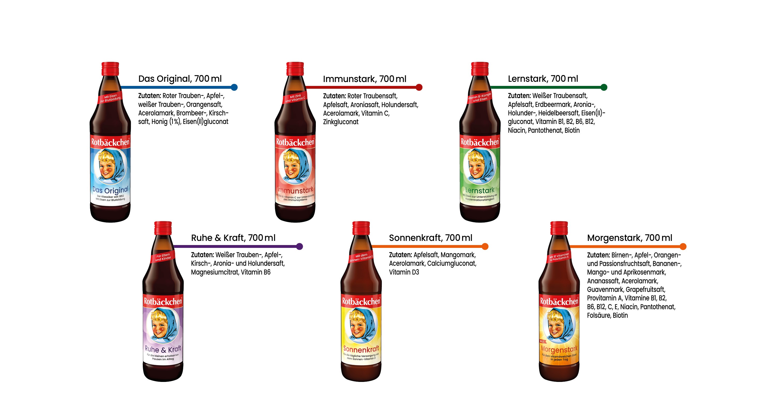 Im Alltag optimal mit wertvollen Vitaminen und Mineralstoffen versorgt – mit dem Probierpaket für dich und deine Liebsten, aus sechs leckeren Rotbäckchen Lieblingssorten: Das Original, Immunstark, Lernstark, Morgenstark, Sonnenkraft und Ruhe & Kraft.