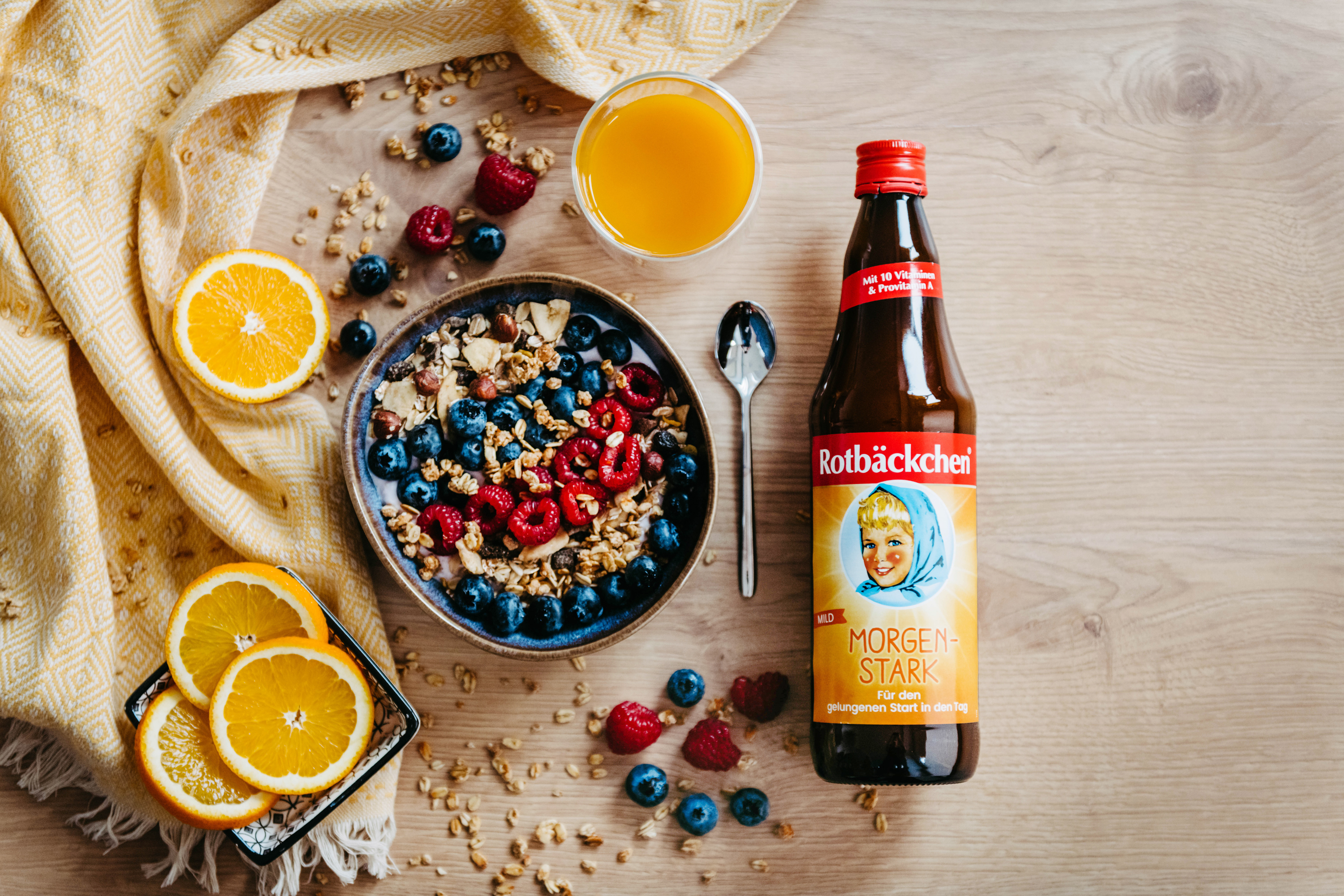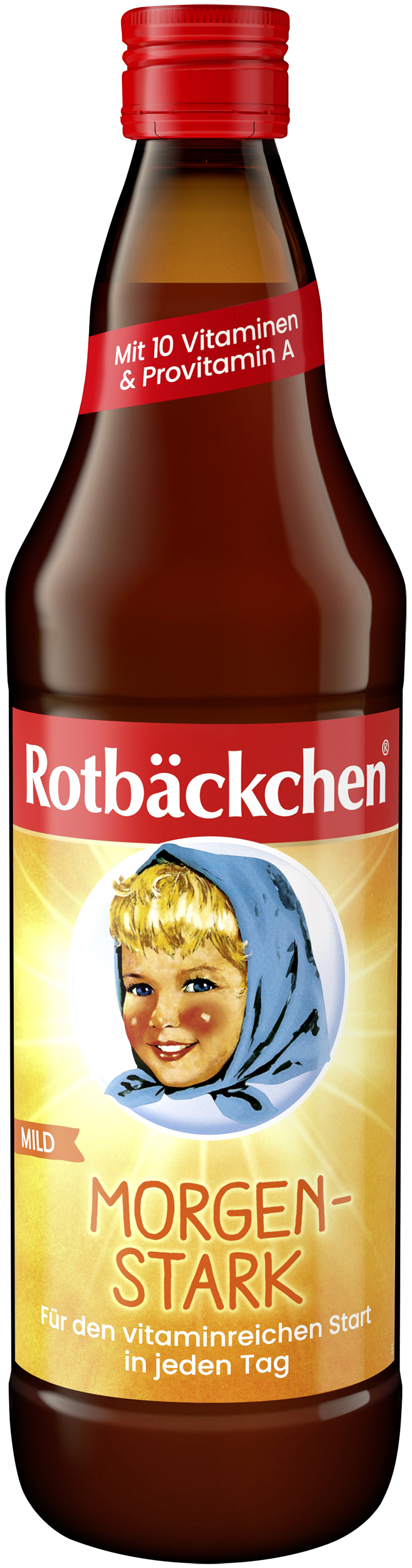 Rotbäckchen Morgenstark sorgt mit zehn wertvollen Vitaminen und Provitamin A für einen gelungenen Start in den Tag. Vitamin B12 unterstützt den Energiestoffwechsel unseres Körpers und trägt außerdem zur Verringerung von Müdigkeit und Ermüdung bei.