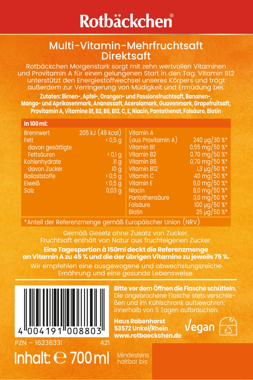 ROTBÄCKCHEN Morgenstark 6er Pack (6 x 700 ml) - Multi-Vitamin-Mehrfruchtsaft