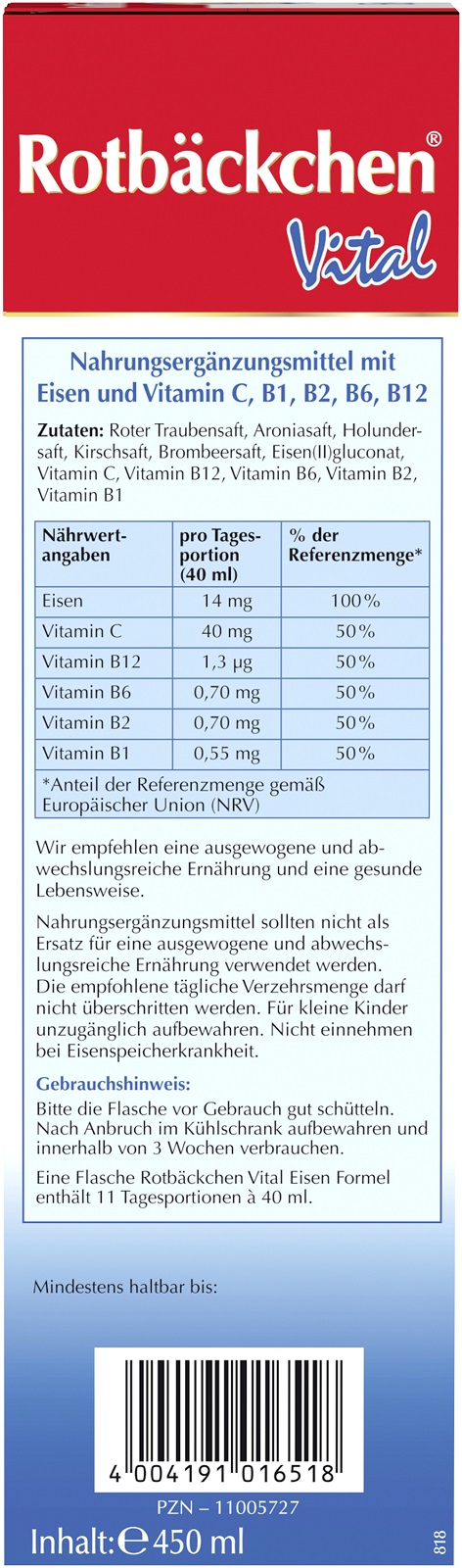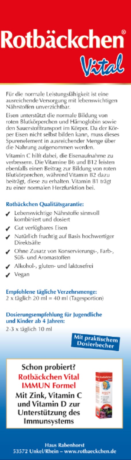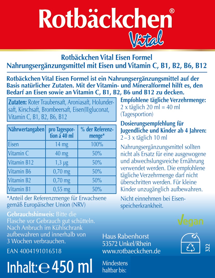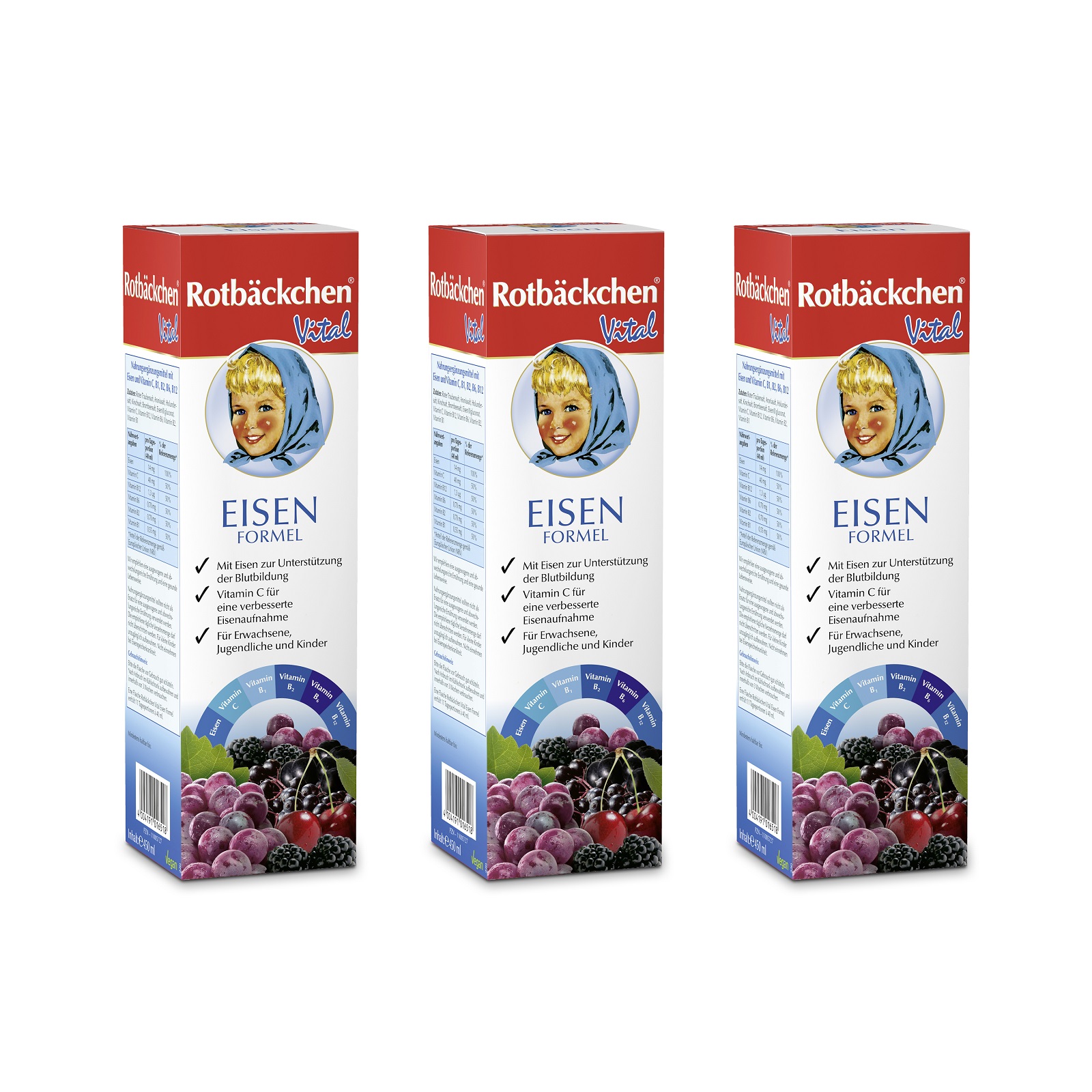 ROTBÄCKCHEN Vital Eisen Formel 3er Pack (3 x 450 ml) - Nahrungsergänzungsmittel mit Eisen und Vitamin C, B1, B2, B6 und B12